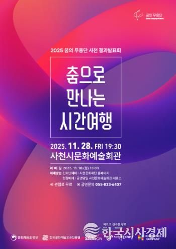 한국시사경제 권충현 기자 | 사천문화재단은 오는 11월 28일 오후 7시 30분, 사천시문화예술회관 대공연장에서 ‘2025 꿈의 무용단 사천’ 결과발표회 '춤으로 만나는 시간여행'을 개최한다.