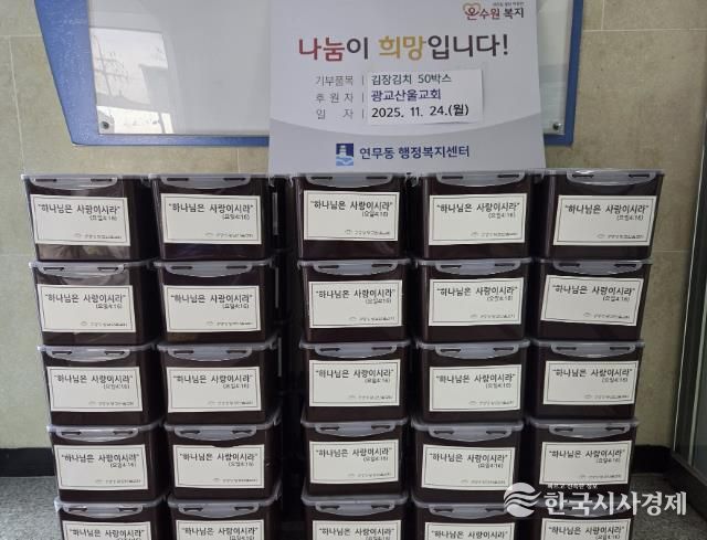 공순정 연무동장은 “추운 겨울을 앞두고 따뜻한 정성을 담아 김장김치를 기부해주신 광교산울교회에 깊이 감사드린다”며 “기부해주신 김치는 꼭 필요한 이웃들에게 소중히 전달하겠다”고 전했다.