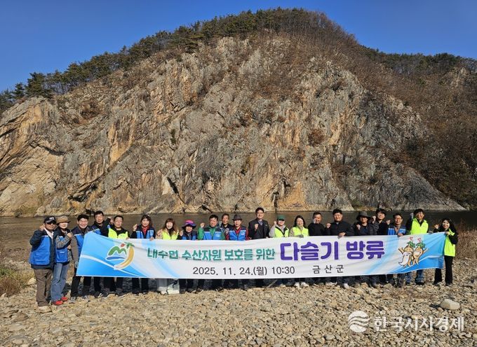 한국시사경제 김태훈 기자 | 금산군은 지난 24일 부리면 적벽강 일원에서 지역 하천 생태계 복원과 수질 개선을 위해 약 300만 패의 다슬기를 방류했다.