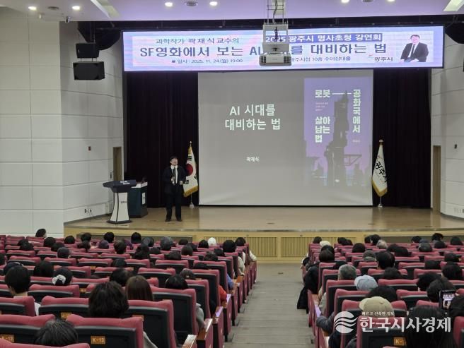 한국시사경제 기동취재팀 | 광주시는 지난 24일 오후 7시 광주시청 수어장대홀에서 300여 명의 시민을 대상으로 곽재식 교수 초청 ‘2025년 제3회 명사 초청 강연회’를 개최했다.