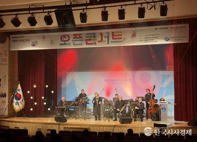 한국시사경제 세종취재분부 | 세종특별자치시교육청은 11월 25일 세종특별자치시교육청 대강당에서 관내 유치원·초·중·고·특수·각종학교 교원과 교직원을 대상으로 ‘2025년 세종예술온(ON)학교 온아카데미 서울팝스오케스트라 재즈앙상블 오픈콘서트’를 성황리에 마쳤다.