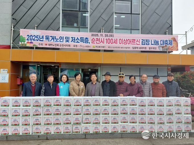 김영수 순천시 노인회장은 “추운 겨울일수록 이웃에 대한 관심과 온정이 더욱 절실한 시기”라며 “이번 김장 김치 나눔이 어르신들의 따뜻한 겨울나기에 도움이 되길 바란다”고 말했다.