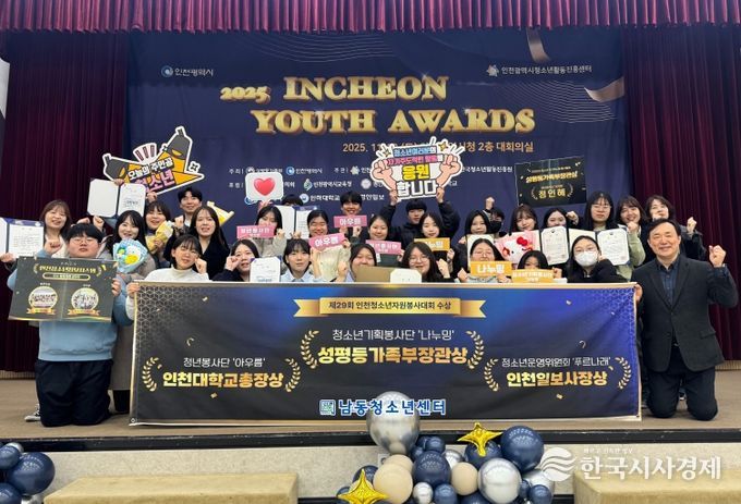 한국시사경제 윤광희 기자 | 인천시 남동구 남동청소년센터는 소속 청소년 활동 참여‧자치기구가 인천시청에서 열린 ‘2025년 우수 청소년 활동 시상식(인천 유스 어워즈)’에서 성평등가족부 장관상을 포함해 총 8개 부문에서 수상했다고 26일 밝혔다.