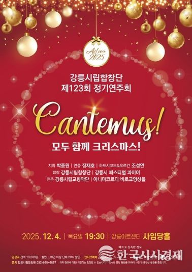 한국시사경제 이정이 기자 | 강릉시가 다채로운 공연과 전시를 마련해 시민과 관광객들에게 따뜻하고 풍성한 연말정취를 선사한다. 세계적인 현대미술 작가 캐서린 번하드 특별전과 국내 작가 콰야의 전시를 비롯해 강릉시립합창단의 제123회 정기연주회 및 기획공연, 초당작은도서관 크리스마스 이벤트 등으로 문화와 겨울 바다를 동시에 즐길 수 있는 강릉만의 특별한 연말 분위기를 만들 것으로 기대된다.