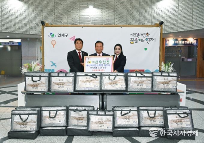 한국시사경제 김숙영 기자 | 연제구는 11월 24일 ㈜천우산전(대표 김두석)으로부터 지역 내 저소득 중장년층 1인 가구 지원을 위한 전기매트 33개(100만 원 상당)를 전달받았다.