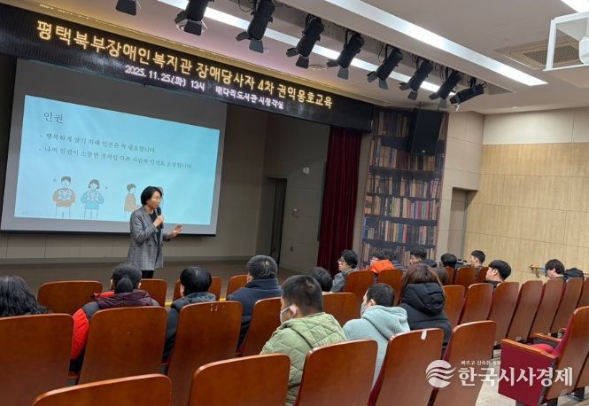 한국시사경제 문화팀 | 평택북부장애인복지관(관장 유영애)은 11월 25일, 배다리도서관에서 관내 3개 기관의 장애 당사자들을 대상으로 '2025 장애당사자 제4차 권익옹호교육'을 실시하며, 금년도 계획된 권익옹호교육 일정을 모두 마무리했다.