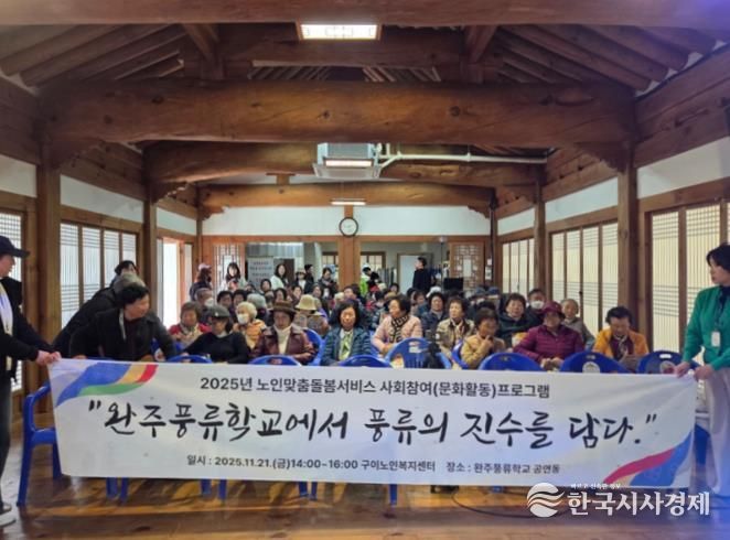 한국시사경제 김숙영 기자 | 완주군 구이노인복지센터가 최근 완주풍류학교에서 노인맞춤돌봄서비스 이용자 중 사회참여 기회가 적은 어르신 60여 명을 대상으로 국악 공연 관람 행사를 진행했다.