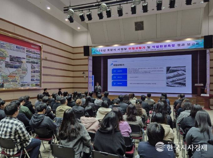 한국시사경제 노승선 기자 | 포항시는 28일 시청 대회의실에서 시 직영 사업장의 관리감독자와 사업 담당자 등 100여 명이 모인 가운데 ‘2025년 포항시 사업장 위험성평가 컨설팅 및 작업환경측정 용역 결과 보고회’를 개최했다.