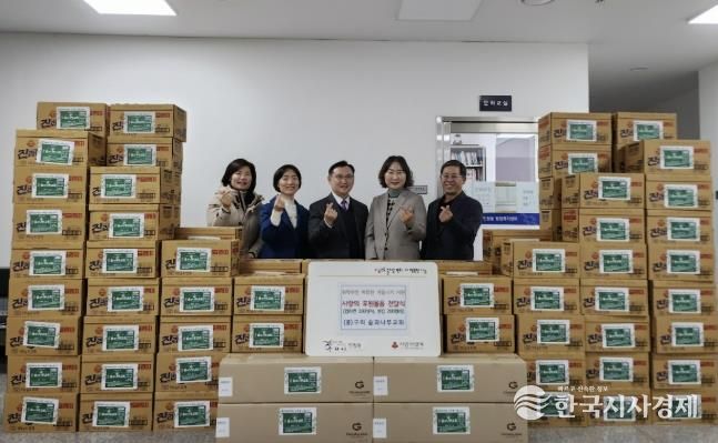 한국시사경제 경기북부취재본부 | 구리시 인창동 행정복지센터는 11월 27일, 구리 숲과나무교회로부터 지역 내 어려운 이웃을 위한 컵라면 100상자와 겨울 장갑 200켤레를 기탁받았다고 밝혔다.