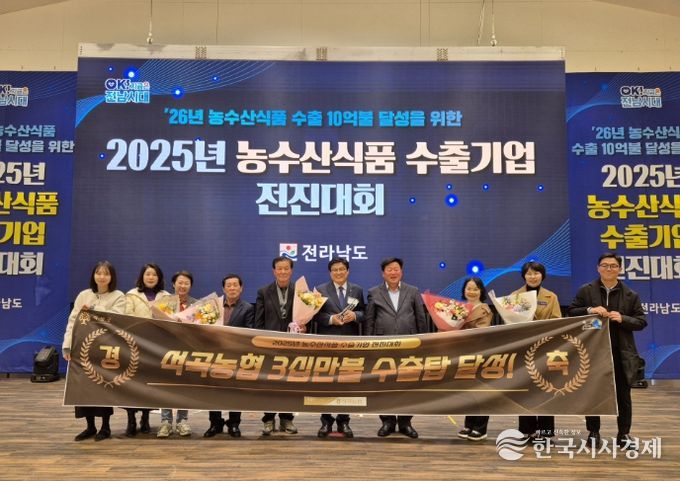 한국시사경제 권충언 기자 | 전남 곡성군은 지난 11월 28일 남악 스카이웨딩컨벤션에서 열린‘2025년 농수산식품 수출기업 전진대회’에서 관내 소재한 석곡농업협동조합이 30만 불 수출탑을 수상했다고 2일 밝혔다.