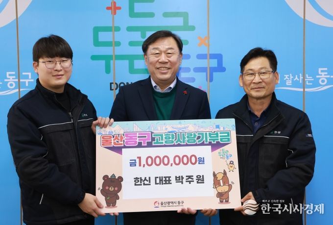한국시사경제 울산취재본부 | 울산 동구는 12월 2일(화) 오전 10시 한신 박주원 대표가 김종훈 동구청장을 만나 고향사랑기부금 100만 원을 기탁했다.