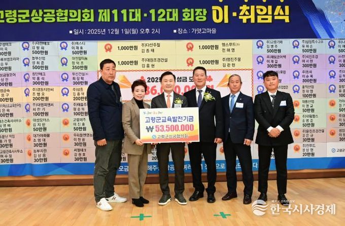 한국시사경제 노승선 기자 | 고령군상공협의회에서 12월 1일 가얏고마을에서 개최된 ‘2025년 고령군상공협의회 워크숍·정기총회 및 회장 이·취임식’에서 지역의 교육 발전과 인재 양성을 위해 사용해 달라며 교육발전기금 5,350만원을 기탁했다.