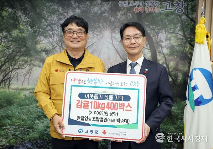 한결영농조합법인(대표 박종대)에서 감귤 10㎏ 400박스(2000만원 상당)의 성품을, 명품고추연구회(회장 구자권)에서 고춧가루 165㎏(620만원 상당)을, 고창성북교회(목사 오동혁)에서 500만원의 성금을, 대성전력(대표 권광식)에서 300만원의 성금을, 등나무숨 카페 바리스타 일동이 246만의 성금을 기탁했다.