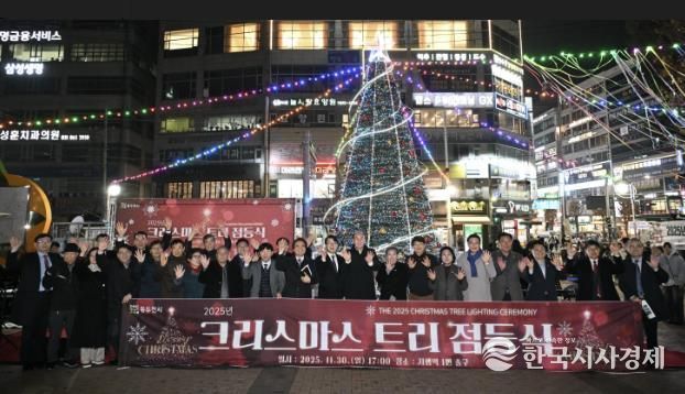한국시사경제 기동취재팀 | 동두천기독교연합회는 지난 11월 30일 오후 5시, 지행역 1번 출구 앞 광장에서 '2025년 크리스마스 트리 점등식'을 개최했다.