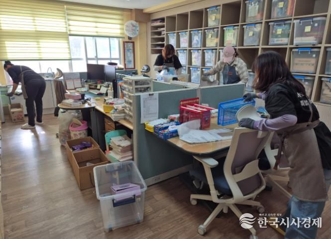 한국시사경제 충남취재본부 | 충청남도서산교육지원청 학교지원센터는 지난 2일, 서동초등학교 병설유치원을 방문하여 학습교구 정리정돈 및 불용 교구 폐기 등 자료실 정리 지원 활동을 실시했다.
