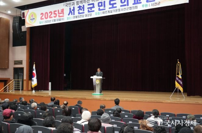한국시사경제 김태훈 기자 | 서천군은 지난 3일 서천문예의전당 대강당에서 바르게살기운동 서천군협의회(회장 김영산) 주관으로 ‘2025년 서천군민 도의교실’을 개최했다고 밝혔다.