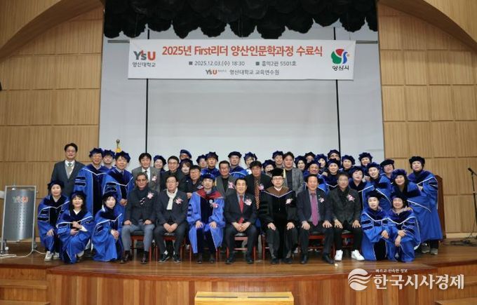 한국시사경제 노승선 기자 | 양산시는 지난 3일 영산대학교 대강당에서 ‘2025년 제11기 First리더 양산인문학과정 수료식’을 개최했다.