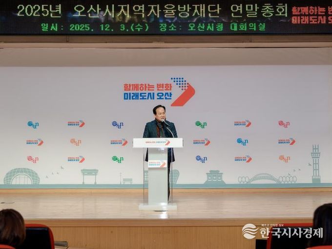 한국시사경제 권충현 기자 | 오산시 지역자율방재단은 지난 3일 오산시청 3층 대회의실에서 ‘2025년 연말 총회’를 개최하고 한 해를 안전하게 마무리하는 시간을 가졌다. 이번 총회에는 이권재 오산시장, 이상복 오산시의회의장, 성길용 부의장, 시의원 4명을 비롯한 지역 관계자와 방재단원들이 참석했다.