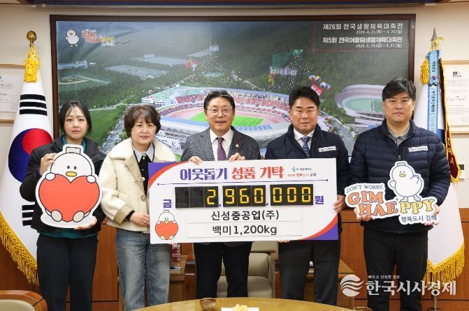 한국시사경제 노승선 기자 | 김해시는 5일 신성중공업(주)에서 제2공장 건립을 기념해 쌀 100포(1,200kg, 296만원 상당)를 기탁했다고 밝혔다.