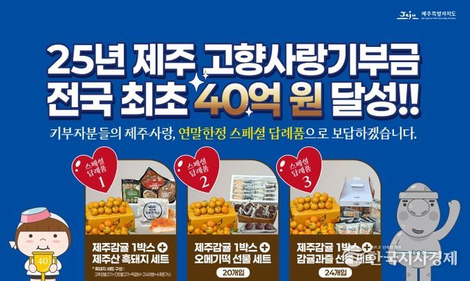 한국시사경제 노승선 기자 | 제주특별자치도는 올해 고향사랑기부금이 4일 기준 전국 최초로 단년도 40억 원(40억 700만 원, 3만 9,454건)을 넘어섰다고 밝혔다.