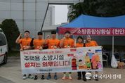한국시사경제 오영주 기자 | 천안서북소방서는 26일 천안시민체육공원 일원에서 열린 ‘이봉주 마라톤대회’와 연계해 주택용 소방시설 설치 홍보활동을 전개했다. 이번 행사는 시민이 대거 참여하는 지역행사를 활용하여 주택용 소방시설의 중요성을 알리고 안전문화 확산에 기여하기 위해 마련됐다. 이날 소방교 정정민, 소방사 하동수·오승훈·주현민·김문찬은 “주택용 소방시설” 홍보 티셔츠를 착용하고 10km 코스를 달리며 시민들에게 소방안전의 중요성을 알렸다. 주택용 소방시설은 단독경보형 감지기와 소화기를 말하며, 화재 발생 초기 신속한 대피와 초기 진화를 가능하게 하는 필수 안전장비다. 두 시설 모두 단독주택과 공동주택(아파트ㆍ기숙사 제외)에 의무적으로 설치해야 한다. 소화기는 각 세대ㆍ층별 1개 이상, 단독경보형감지기는 방과 거실 등 구획된 실마다 1개씩 설치해야 한다. 김종욱 서장은 “시민들이 많이 참여하는 행사에서 주택용 소방시설의 중요성을 자연스럽게 알릴 수 있었다”며, “앞으로도 다양한 방법으로 안전문화가 생활 속에 정착될 수 있도록 노력하겠다”고 말했다.