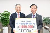 한국시사경제 경남취재본부 | (재)거창군장학회는 27일 경남도립거창대학 김재구 총장이 지역인재 양성을 위한 장학금 100만 원을 기탁 했다고 밝혔다. 김재구 총장은 “지역의 학생들이 안정적인 환경에서 학업에 전념하고 자신의 꿈을 키워나가는 데 조금이나마 도움이 되길 바란다”며, “앞으로도 지역사회와 함께 성장하는 대학으로서 인재 양성에 보탬이 되겠다”라고 기탁 소감을 전했다. 구인모 이사장은 “지역인재 육성을 위한 뜻깊은 나눔에 깊이 감사드린다”며 “기탁해 주신 장학금은 학생들이 미래를 향해 힘차게 나아갈 수 있도록 소중히 사용하겠다”고 말했다. 한편, (재)거창군장학회는 지역 학생들의 교육 기회 확대와 우수 인재 양성을 위해 장학금 지원과 다양한 교육 지원사업을 추진하며 지역 교육 발전에 기여하고 있다.