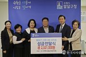 한국시사경제 사회팀 | 수원시 팔달구와 구 지역사회보장협의체는 지난 15일 구청장실에서 ‘팔달구 이웃사랑 바자회’ 성금 전달식을 가졌다. 지난 9월 23일 팔달구 지역사회보장협의체가 주관하고, 관내 10개 동 지역사회보장협의체 및 사회복지시설, 유관기관이 힘을 모아 추진한 ‘팔달구 이웃사랑 바자회’ 행사를 통해 전달된 성금은 총 252만 1천원으로, 해당 성금은 팔달구 취약계층을 지원하기 위한 구 특화 사업에 사용할 예정이다. 권남호 구 지역사회보장협의체 공동위원장은 “이웃의 어려움을 함께 나누기 위해 한마음으로 참여해주신 분들께 감사드린다”며, “이번 성금이 지역 내 어려운 이웃들에게 따뜻한 희망으로 전해지길 바란다”고 말했다. 이상균 팔달구청장은 “팔달구민의 자발적인 참여와 나눔이 지역사회를 더욱 따뜻하게 만든다”며, “앞으로도 민관이 함께하는 복지공동체 실현을 위해 적극 노력하겠다”고 밝혔다.