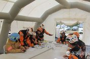 한국시사경제 오영주 기자 | 해남소방서가 지난 15일 해남군수산업협동조합에서 대규모 재난 상황을 대비한 2025년 긴급구조종합훈련을 실시했다. 이번 훈련은 대규모 재난 발생 시 관계 기관 간 공조 체계를 점검하고 현장 대응 역량을 강화하기 위한 것으로, 해남군청, 해남경찰서, 해남군 보건소, 군부대, 해남수협 등 10개 기관·단체에서 총 148명이 참여했다. 훈련은 대형화재로 인해 다수의 사상자가 발생한 상황을 가정하여 훈련이 진행되었으며, 현장에서는 인명 구조와 화재 진압, 응급처치, 다수 사상자 분류 및 이송, 현장 긴급구조통제단 운영 등 전 과정이 실전처럼 전개됐다. 주요 훈련은 ▲대규모 화재 발생에 따른 화재진압 및 인명구조 ▲옥상 고립자 고가사다리차 구조 ▲공기안전매트를 활용한 대피훈련 ▲다수 사상자 발생 시 응급의료소 운영 및 이송 ▲현장지휘체계 확립 및 상황 전파 등으로 진행됐다. 또한 돌발상황으로, 건물 붕괴로 인해 구조 활동 중이던 소방대원 1명이 갇히는 상황이 부여되어 이에 즉각 신속대응구조대(RIT)가 투입, 대원들을 구조하는 훈련이 병행되어 현장의 긴박감을 더했다. 또한 드론을