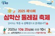 한국시사경제 문화팀 | 파주시 교하동 주민자치회는 오는 25일 10시, 심학초등학교에서 ‘2025년 제10회 심학산 둘레길 축제’를 개최한다고 밝혔다. ‘깊어가는 가을 속 심학산으로 초대합니다’를 주제로 열리는 이번 행사는 가족이 함께 걷고 즐기는 가을맞이 지역 축제로, 심학산의 아름다운 둘레길을 배경으로 다양한 프로그램이 진행될 예정이다. 이날 축제는 오전 10시 식전 공연을 시작으로, 11시 개막식이 진행된다. 축제 현장에는 체험공간, 먹거리 장터, 농산물 직거래 장터, 풍자화(캐리커처) 무료 체험(선착순 30명) 등 풍성한 볼거리와 즐길 거리가 마련된다. 또한 경품 추첨과 노래자랑 등 참여형 행사도 진행되며, 75인치 발광다이오드(LED) 텔레비전 등 푸짐한 경품이 준비돼 있다. 특히 올해 축제에는 파주시 홍보대사이자 초대가수 김대훈이 출연해 신나는 무대를 선보일 예정이다. 박용호 교하동 주민자치회장은 “올해로 10회를 맞은 심학산 둘레길 축제는 주민이 주도하는 교하동의 대표 축제로 자리 잡았다”라며 “마을회관에서 행사장까지 차량 지원을 제공하는 등 많은 주민들이 불편 없이 참여할 수 있도록