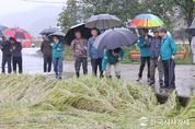 한국시사경제 권충언 기자 | 삼척시는 10월 16일 근덕면 매원리와 교가리 일원에서 최근 가을장마로 인한 벼 도복(倒伏, 작물 쓰러짐 현상) 피해 현장을 방문하고, 피해 농가의 애로사항을 청취했다. 이번 현장 방문에는 시장을 비롯해 농업기술센터 소장, 기술보급과장, 농정과장, 축산과장, 근덕면장 등 관계 공무원과 벼 재배 작목반 회원 및 선도농업인 등 30여 명이 함께했다. 시는 장기간의 가을장마로 인해 벼 생육이 부진하고 쓰러짐과 수발아(이삭 발아), 깨씨무늬병 발생 등이 잇따르자, 피해 상황을 면밀히 파악하고 실질적인 지원방안을 모색하기 위해 현장을 찾았다. 관내 벼 재배면적은 총 538ha로, 이 가운데 미수확 면적이 328ha(61%)에 달하며 도복 피해가 23.6ha, 수발아 피해 25ha, 깨씨무늬병 피해가 40ha로 추정된다. 특히 쓰러진 벼에서는 수발아가 심하게 발생해 일부 품종은 수매가 어려운 상황이다. 시는 농가의 피해를 최소화하기 위해 농업재해보험 가입 농가는 신속히 피해 접수와 조사를 실시해 보상받을 수 있도록 하고, 미가입 농가는 즉시 수확하도록 지도할 계획이다