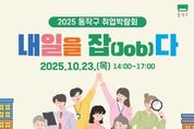 한국시사경제 권충현 기자 | 동작구가 오는 23일 오후 2시 구청 신청사에서 2025 취업박람회 ‘내일을 잡(Job)다’를 개최한다고 밝혔다. 이번 박람회는 구직자의 취업 스트레스 해소와 역량 강화를 지원하기 위해 마련됐다. 관내 유한양행 등 다수의 우수기업과 유관기관이 참여해 채용 및 직업 탐색 기회를 제공할 예정이다. 특히, 올해는 축제 결합형 일자리박람회로서 신청사 곳곳에서 다양한 체험 부스와 부대행사가 함께 운영된다. 먼저, 4층 대강당에서는 관내 유한양행 등 20여 개의 참여기업이 ‘채용부스’를 설치해 구직자를 대상으로 현장 면접과 간접 채용을 진행한다. 또한 구청을 비롯해 동작취업지원센터, 서울관악고용복지+센터 등 유관기관에서 준비한 ‘홍보부스’에서는 취업·직업훈련·고용지원 정보를 제공한다. 이와 함께 4층 소회의실에는 △AI 인적성 검사 △취업타로 △퍼스널컬러 진단 △이력서 사진 촬영 등으로 구성된 ‘취업지원존’이 마련되며, 이곳에서는 이력서·자기소개서 1:1 컨설팅도 받을 수 있다. 1층 로비에는 △메이크업 아티스트 △아로마 향수 만들기 △네일아트 △캘리그라피