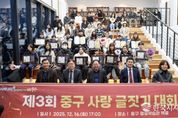 한국시사경제 윤광희 기자 | 인천시 중구는 지난 16일 중구 평생학습관 3층 책뜰에서 ‘제3회 중구 사랑 글짓기 대회 시상식’을 개최했다. 올해로 3회를 맞는 ‘중구 사랑 글짓기 대회’는 학생들 스스로 발로 걸으며, 눈으로 본 중구의 역사, 문화, 자연을 아름다운 글로 표현함으로써, 애향심을 고취하고 인문학적 소양을 키울 수 있도록 돕는 데 목적을 둔 사업이다. 특히 인천시 교육청의 ‘읽·걷·쓰 캠페인’과 연계한 중구 교육혁신지구 특화 사업인 ‘중구마을 구석구석 탐방 사업’의 결실이기도 하다. 올해 대회에는 학생들의 맑은 시선으로 바라본 중구의 거리, 유구한 역사가 깃든 건축물, 바다 내음 가득한 풍경들을 다양한 형식의 글로 표현한 300여 점의 작품이 접수됐다. 치열한 심사 끝에 대상 4명, 최우수 8명, 우수 8명 등 총 20명(초등 부문 10명, 중등 부문 10명)의 입상자가 선정됐다. 시상식 말미에는 초등 부문 대상 입상자인 정은우 학생이 본인의 글짓기 작품인 ‘나의 중구 사랑 이야기’를 직접 낭독함으로써, 진정성 있는 울림을 통해 현장에 있던 관계자와 학부모들의 감탄을 자아냈다
