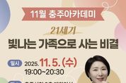 한국시사경제 충북취재본부 | 충주시는 오는 11월 5일 오후 7시 충주시청 3층 대회의실에서 숭실사이버대학교 이호선 교수를 초청해 ‘21세기 빛나는 가족으로 사는 비결’을 주제로 충주아카데미를 개최한다. 이호선 교수는 숭실사이버대학교 기독교상담복지학과 교수이자, 가족상담 및 노년심리 분야의 권위자로 잘 알려져 있다. KBS '아침마당', MBC '기분좋은 날', JTBC '이혼숙려캠프:새로고침' 등 주요 방송 프로그램에서 인간관계와 가족문제에 관한 따뜻하고 현실감 있는 조언을 전달하며 국민 심리 멘토로 자리매김한 바 있다. 또한, 「마흔의 기술」, 「이호선의 나이 들수록」 등 다수의 저서를 통해 현대사회에서 관계의 회복과 행복한 소통의 중요성을 꾸준히 전하고 있다. 이날 특강에서는 급변하는 사회 속에서 가족 간의 관계를 건강하게 유지하고, 세대 간의 공감과 존중을 회복하는 방법을 유쾌하면서도 깊이 있게 다룰 예정이다. 시 관계자는 “이호선 교수의 강연은 시민들이 가족의 의미를 다시 돌아보고, 일상 속에서 행복을 실천할 수 있는 계기가 될 것”이라며, “많은 시민들의 관심과 참여를 바란다