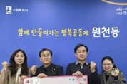 한국시사경제 사회팀 | 지난 17일 경기중앙지방법무사회 수원지부는 원천동 저소득 지역주민들을 돕기 위해 성금 100만 원을 원천동행정복지센터(동장 김선혁)에 후원했다. 이번에 전달된 성금은 경제적 어려움을 겪고 있는 원천동 저소득 지역주민들을 위해 사용될 예정으로, 지역사회 나눔 문화 확산에 기여할 것으로 기대된다. 경기중앙지방법무사회 수원지부 관계자는 “작은 정성이지만 지역 내 어려운 이웃들에게 도움이 되길 바란다”며 “앞으로도 지역사회와 함께하는 다양한 나눔 활동을 지속해 나가겠다”고 밝혔다. 김선혁 원천동장은 “어려운 이웃을 위한 따뜻한 나눔에 깊이 감사드린다”며 “후원금은 도움이 꼭 필요한 저소득 주민들을 위해 소중히 사용하겠다”고 전했다. 한편, 경기중앙지방법무사회 수원지부는 매년 꾸준히 성금을 전달하여 지역사회 복지 증진을 위해 힘쓰고 있다.