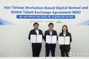 한국시사경제 노승선 기자 | 제주창조경제혁신센터(대표이사 이병선, 이하 제주센터)는 오늘(24일) 대만 국가발전위원회 노마드 타이완 오피스(대표 Kai Hsu, 이하 노마드 타이완), 그리고 호퍼스(대표 조정현)와 함께 제주-대만 워케이션 기반 디지털노마드 및 글로벌 인재 교류 협약을 체결했다. 이번 협약은 워케이션을 중심으로 디지털노마드 및 글로벌 스타트업 인재 교류 생태계 구축을 목표로 하며, 양 지역 간의 지속 가능한 협력체계를 통해 아시아 대표 디지털노마드 허브로의 도약을 추진하기 위함이다. 협약을 체결한 노마드 타이완은 대만 정부가 운영하는 디지털노마드 육성 사업으로, 원격 근무자와 글로벌 인재가 대만 각 도시에서 일하고 교류할 수 있는 인프라를 구축하고 있다. 또 호퍼스는 전 세계 원격 근무자와 스타트업의 교류를 촉진하는 글로벌 워케이션 플랫폼 기업으로, 아시아 주요 도시의 코워킹·코리빙 네트워크를 연결해 국제적 커뮤니티를 운영하고 있다. 공공과 민간이 함께 참여한 이번 협약을 통해 제주센터와 노마드 타이완은 양 지역의 정책적 협력 기반과 워케이션 인프라를 연계하고, 민간 스타트업인 호퍼스는 글로벌