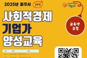 한국시사경제 경기북부취재본부 | 파주시는 사회적가치 실현을 위한 사회적경제 생태계 확산을 목표로 ‘2025년 하반기 사회적경제 기업가 양성 교육’을 운영한다. 교육은 10월 14일부터 11월 27일까지 매주 화·목 19~21시에 진행되며, 금촌어울림센터 1층에서 총 14강으로 진행된다. 대상은 관내 사회적경제 창업 희망자 및 관심 시민이며, 정원은 선착순 30명이다. 교육과정은 사회적경제의 철학과 기업가정신을 시작으로, ▲협동조합·마을기업·사회적기업의 제도 이해 ▲소셜 비전 수립 ▲지역자원 발굴·활용 ▲홍보·마케팅 ▲조직 운영 ▲사회적가치 체계 구축까지 창업 전 과정을 단계적으로 다룬다. 특히 생성형 인공지능(AI)을 활용한 사업계획서 작성 실습으로 변화하는 환경에 바로 적용할 수 있는 역량을 기를 수 있도록 구성했다. 특화 프로그램으로 업종별 자문상담을 마련해 유통·제조, 돌봄·사회서비스, 교육·관광·체험, 환경·자원순환 분야의 현직 사회적경제 기업 대표들이 사례 중심의 밀착 상담을 제공한다. 또한 창업 단계부터 사회적기업 인증까지의 과정을 성공적으로 거친 선배 기업가와의 만남도 진행되어 실제 경
