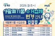 한국시사경제 경기북부취재본부 | 파주시는 2026년 1월 1일부터 관내 생활폐기물(쓰레기) 수집·운반 대행업체가 변경됨에 따라, 시민에게 정확한 정보를 안내하고 현장 운영이 원활히 정착될 수 있도록 홍보와 안내를 강화하고 있다고 밝혔다. 이번 대행업체 변경으로 지역별 담당 업체가 달라졌으며, 특히 문산읍의 경우 세부 지역(리 단위)에 따라 담당 업체가 서로 다를 수 있어 시민들의 각별한 주의가 필요하다. 변경된 담당 업체 정보는 파주시청 누리집에서 확인하거나, 자원순환과 청소행정팀 및 민원전화상담실(콜센터)로 문의하면 안내받을 수 있다. 파주시는 시민 혼선을 최소화하기 위해 변경 사항을 지속적으로 홍보하는 한편, 대행업체와 협력해 현장 안내를 강화하고 주민 문의에 신속히 대응해 나갈 계획이다. 심재우 자원순환과장은 “대행업체 변경 초기에는 일시적인 혼선이 발생할 수 있다”라며 “현장 점검을 강화해 수거 지연 등 문제를 신속히 해소하고 청소 행정이 조기에 안정될 수 있도록 노력하겠다”라고 밝혔다.