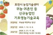 한국시사경제 경기북부취재본부 | 포천시농업기술센터 2026년 포천시 귀농·귀촌인 등 신규농업인 기초영농기술교육’ 교육생을 오는 2월 6일까지 모집한다. 이번 교육은 포천시로 귀농했거나 귀농을 희망하는 신규농업인을 대상으로 농업경영 전반에 대한 이해와 기초 영농기술 교육을 제공해 안정적인 농촌 정착과 전문농업인으로의 성장을 지원하기 위해 마련됐다. 올해 교육 인원은 25명 내외로 운영될 예정이다. 주요 교육 내용은 귀농 정책사업과 영농생활에 필요한 법률, 지속 가능한 농장 디자인 등 농촌생활 분야를 비롯해 토양 관리와 재배 기술, 소규모 시설하우스 조성, 친환경 농자재 제조 및 활용 등 농업기초기술 교육으로 이뤄진다. 또한 우수 농가 및 체류형 귀농마을 현장 견학을 통해 실제 농업 현장을 직접 체험할 수 있도록 할 예정이다. 교육은 3월 31일부터 7월 28일까지 매주 화요일, 총 17회에 걸쳐 진행되며 교육비는 전액 무료다. 특히 이번 교육 과정은 귀농 자금 신청 시 교육 이수 시간으로도 인정돼 교육생들에게 실질적인 도움이 될 것으로 기대된다. 교육생 모집 기간은 2월 6일까지이며, 모집 대상은 포