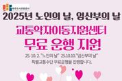 한국시사경제 경기북부취재본부 | 파주도시관광공사 교통약자이동지원센터는 10월 2일 “노인의 날”과 10월 10일 “임산부의 날”을 맞이하여 특별교통수단 무료 운행 서비스를 진행한다고 밝혔다. “노인의 날”은 센터에 등록된 이용자 중 만 65세 이상을 대상으로 하며, “임산부의 날”은 센터에 등록된 임산부를 대상으로 무료 운행을 지원한다. 이용 방법은 기존 배차 접수 방식과 동일하며, 해당 기념일인 00:00~24:00에 콜센터에 접수된 배차건에 한하여 무료로 이용할 수 있다. 공사 조동칠 사장은 “교통약자이동지원 서비스는 단순한 교통수단 제공을 넘어 사회적 가치 실현에 기여하고 있다”며, “앞으로도 다양한 기념일을 연계한 사회공헌 활동을 추진해 교통약자의 권익 증진과 행복하고 안전한 이동 환경 조성에 힘쓸 계획이다.”라고 전했다.
