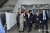 한국시사경제 경기북부취재본부 | 김포시는 2월 27일 김포골드라인 사우역을 방문한 김민석 국무총리와 대동해서 혼잡도를 점검했다. 김주영, 박상혁, 모경종 국회의원, 대광위원장도 함께했다. 이번 점검은 김포골드라인 열차 증차사업 등 혼잡완화 대책을 이행함에도 불구하고 열차 혼잡이 해소되지 않고 있는 상황에서 이루어졌다. 특히 서울5호선 김포연장과 관련한 국회 국민청원동의가 5만명을 돌파해 소관 상임위원회에 회부된 시점과 맞물려 진행됐다. 국무총리는 사우역에서 김포골드라인의 운영 및 혼잡 현황, 그간의 혼잡완화 방안 및 안전대책 추진현황을 보고받고, 5호선 연장 추진 상황도 함께 확인했다. 김병수 김포시장은 “근본해결책으로 5호선 예타통과가 시급하다.”고 건의했다. 이 자리에서 김포골드라인 혼잡 개선을 위한 ▲70(A·B)버스 노선 신설, ▲광역버스 추가 투입, ▲개화~김포공항 구간 가로변 버스전용차로 개통, ▲ 김포골드라인 열차 6편성 증차, ▲ 배차간격 단축, 안전요원 배치 확대 등 그간 사업 추진현황 등을 점검했다. 그러면서 혼잡 개선을 위한 추가 방안도 집중 논의됐다. 현재 추진중에 있는 ▲올림