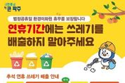 한국시사경제 경기북부취재본부 | 파주시는 환경미화원 휴무 보장을 위해 추석 연휴 기간인 10월 4일부터 10월 6일, 10월 8일부터 10월 9일까지는 생활폐기물을 배출해서는 안 되며, 이 기간 동안에는 생활쓰레기 수거가 중단된다고 밝혔다. 단, 운정신도시 내 자동집하시설이 설치된 지역은 추석 연휴에도 평소처럼 집하시설을 통해 종량제봉투를 정상적으로 배출할 수 있고, 연휴 마지막 날인 10월 9일 18시부터는 쓰레기 배출이 가능하다. 시는 추석 명절과 아시아태평양경제협력체(APEC) 정상회의를 계기로, 행정안전부 주관 ‘대한민국 새단장 캠페인’에 동참해 9월 22일부터 10월 1일까지 중점 청소 및 단속 기간으로 지정했다. 이 기간 동안 추석맞이 대청소를 통해 청소 취약지역을 정비하고, 쓰레기 무단투기 예방을 위한 집중 단속을 실시해 연휴 기간 동안 청결한 환경을 유지할 계획이다. 또한 시는 연휴 기간인 10월 3일부터 10월 9일까지 시민들의 불편을 최소화하기 위해 상황반을 운영하고, 청소대행업체에서는 15개 기동반을 배치해 쓰레기 관련 불편 사항과 민원을 신속하게 처리할 계획이다. 특히 야당역,