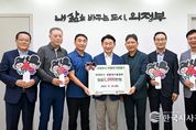 한국시사경제 경기북부취재본부 | 의정부시는 9월 25일 의정부시 생활폐기물협회가 추석 명절을 맞아 저소득층을 위한 성금 1천만 원을 전달했다고 밝혔다. 이번 성금 전달은 명절을 맞아 소외계층과 따뜻한 정을 나누고, 나눔 문화를 확산하기 위해 마련됐다. 협회는 매년 지역 내 취약계층을 돕기 위한 성금과 봉사 활동을 이어오며 선한 영향력을 전파해 왔다. 전달식에는 김동근 시장을 비롯해 ▲의정부시 생활폐기물협회 최상갑 지회장 ▲㈜미래환경 한규범 대표 ▲㈜의정환경개발 김기정 대표 ▲㈜녹색환경 김성일 대표 ▲㈜오커 김우근 대표 등이 참석했다. 성금은 사회복지공동모금회를 통해 저소득층에 전달될 예정이다. 의정부 지역 5개 청소대행업체로 구성된 의정부시 생활폐기물협회는 정기적인 성금 기탁과 저장강박증 청소사업 등 지역사회 공헌 활동을 이어오며 이웃과 함께하는 나눔 문화 확산에 앞장서고 있다. 협회는 “민족 명절인 한가위를 맞이해 어렵고 소외된 이웃분들에게 조금이나마 온정이 전해질 수 있도록 5개 업체가 200만 원씩 총 1천만 원을 준비했다”고 전했다. 김동근 시장은 “매년 어려운 이웃을 위해 성금