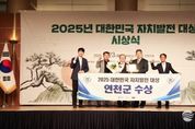 한국시사경제 경기북부취재본부 | 연천군이 (사)한국자치발전연구원이 주관하는 '2025 대한민국 자치발전 대상'에서 기초자치단체 부문 수상자로 선정됐다. 시상식은 지난 23일 서울 용산구 백범김구기념관 컨벤션홀에서 개최됐다. 이번 수상은 연천군이 접경지역이라는 특수한 여건 속에서도 지역 자원을 활용한 독창적인 정책 추진, 주민 참여 확대, 맞춤형 행정 운영을 통해 지방자치 발전에 크게 기여한 공로를 인정받은 결과다. '대한민국 자치발전 대상'은 행정안전부 소관 (사)한국자치발전연구원이 주관하며, 국회의원·지방자치단체·의회·공무원·민간 부문 등에서 지방자치 발전에 기여한 개인과 단체를 선정해 시상한다. 특히 지방자치단체 부문은 단체의 업적을 중심으로 평가해 수여되며, 자치분권과 지역 혁신을 선도한 모범 사례를 널리 알리는 데 목적이 있다. 김덕현 연천군수는 “이번 수상은 연천군민과 함께 만들어낸 값진 성과”라며 “앞으로도 군민의 삶을 풍요롭게 하고, 지역 발전을 선도하는 자치행정을 지속적으로 펼쳐 나가겠다”고 소감을 밝혔다.