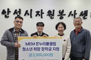 한국시사경제 경기취재본부 | 지난 25일, 안성시자원봉사센터는 머크일렉트로닉머티리얼즈㈜ 임직원 봉사단인 ‘머크 온누리愛클럽’과 함께 관내 학생을 위한 ‘희망장학금’ 전달식을 가졌다. 이번 장학금은 학업에 대한 열의가 높고 성실한 지역 내 학생을 격려하기 위해 마련됐으며, 머크 임직원들이 자발적으로 조성한 후원금을 바탕으로 전달되어 의미를 더했다. 머크 온누리愛클럽은 그동안 안성 지역사회를 위해 다양한 봉사활동과 기부를 이어오며 기업의 사회적 책임을 실천하고 있는 임직원 중심의 봉사단체다. 김동성 센터장은 “어려운 외부 환경에서도 꿈을 향해 정진하는 학생에게 이번 장학금이 큰 힘이 되길 바란다”라며, “매년 잊지 않고 지역 인재 양성을 위해 따뜻한 정성을 모아주시는 머크 온누리愛클럽에 깊은 감사를 드린다”라고 말했다. 머크 온누리愛클럽 정재훈 회장은 “임직원들의 작은 정성이 학생의 소중한 꿈을 지탱하는 마중물이 되길 바란다”라며, “우리 주변의 이웃을 살피고 지역사회와 함께 성장할 수 있는 나눔 활동을 지속적으로 펼치겠다”라고 화답했다. 한편, 안성시자원봉사센터는 다양한 이해관계자의 지역