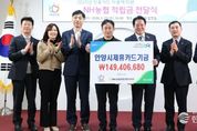 한국시사경제 경기취재본부 | 안양시가 NH농협으로부터 안양사랑 신용카드 사용적립금 약 1억4940만원을 전달받았다. 시는 25일 오후 4시 시청 3층 접견실에서 최대호 안양시장, 이상하 NH농협 안양시지부장 등 8명이 참석한 가운데 전달식을 열었다. 안양사랑 신용카드 사용적립금은 안양시청 기업(법인)카드, 공무원 복지카드, 보조금 카드 등 NH농협과 제휴된 카드를 사용할 때마다 일정 비율로 조성되는 기금(캐시백)이다. 지난 2024년 약 1억2843만원이던 적립금은 지난해 약 1억4940만원으로 전년 대비 약 16% 증가했다. 시 관계자는 “예산 집행의 투명성을 높이기 위해 현금보다 카드 사용을 권장하고 있으며, 안양사랑 신용카드 적립금을 다음 연도 일반회계 세원으로 활용하고 있다”고 설명했다. 시는 이번 사용적립금도 올해 제2회 추경 세입예산에 편성해 시민 복지사업 등에 사용할 예정이다.