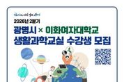 한국시사경제 경기취재본부 | 광명시가 어린이 과학적 창의력을 키우고 일상 속 과학 문화를 확산하고자 ‘2026년 2분기 광명시 생활과학교실’ 수강생을 모집한다. 광명 생활과학교실은 광명시와 과학기술정보통신부, 한국과학창의재단이 후원하고 이화여자대학교 생활과학교실 지역운영센터가 주관해 운영한다. 20년 운영 노하우를 갖춘 이화여대 지역운영센터는 직접 개발한 교육 과정과 전문 강사진으로 수준 높은 체험형 과학교육을 제공한다. 이번 2분기 수업은 오는 20일부터 7월 1일까지 10주간 진행한다. 교육 과정은 ▲무한반사(물리) ▲쪽매맞춤(수학) ▲전해질과 화학전지(화학) ▲지진 내진설계(지구과학) ▲심장과 혈액순환(생물) 등 아이들 흥미를 자극할 10가지 주제로 구성했다. 모집 대상은 광명시 거주 초등학교 3~6학년생이다. 수업 장소는 철산동 디지털혁신교육센터를 비롯해 광명6동, 소하1동, 하안2동 행정복지센터 등 관내 거점 4개소에서 진행한다. 신청은 오는 4월 3일부터 디지털혁신교육센터 누리집에서 선착순으로 진행한다. 수강료는 무료이며, 실험 재료비(5만 원)만 부