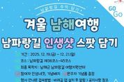 한국시사경제 경남취재본부 | 아름다운 쪽빛 바다가 펼쳐진 남해의 겨울을 온전히 느낄 수 있는 특별한 걷기 행사가 오는 12월 19일부터 21일까지 3일간 남파랑길 코스 및 남파랑여행지원센터에서 열린다. 남해군 관광진흥과는 코리아둘레길 중 남해 구간에 해당하는 ‘남파랑길’의 매력을 알리고, 연말을 맞아 남해를 찾은 가족, 연인, 친구 단위 관광객들에게 잊지 못할 추억을 선사하기 위해 이번 행사를 기획했다. 행사 코스는 남해의 비경을 간직한 남파랑길 제36코스부터 제45코스까지다. 참여를 원하는 관광객은 스마트폰에 ‘남해바래길’ 앱을 설치한 뒤 원하는 코스를 선택하고, ‘따라가기’ 기능을 활성화하여 걸으면 된다. 참가자들은 각 코스를 걸은 후 최종 목적지인 남파랑길여행지원센터(이동면 성남로 97)에 도착하여 걷기 기록을 인증하면 다양한 혜택을 받을 수 있다. 남해군은 참여 열기를 높이기 위해 풍성한 기념품을 마련했다. 단순 걷기 참여자(선착순 200명)에게는 기념 배지를, 5km 이상 구간을 걸은 참여자(선착순 100명)에게는 소정의 기념품을 증정한다. 특히 해당
