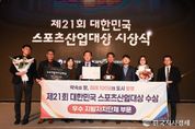 한국시사경제 경남취재본부 | 통영시는 11일 서울 올림픽파크텔에서 열린 ‘제21회 대한민국 스포츠산업대상’시상식에서 우수 지방자치단체상을 수상했다고 밝혔다. ‘대한민국 스포츠산업대상’은 문화체육관광부가 주최하고 국민체육진흥공단이 주관하는 스포츠 산업 분야 국내 최고 권위의 상으로 한 해 동안 국내 스포츠 산업 발전에 기여한 지자체, 개인, 단체를 선정해 시상한다. 통영시가 수상한 우수 지방자치단체상은 전국 226개 지방자치단체를 대상으로 17개 광역지방자치단체의 추천을 받아 후보가 선정되며, 산업·스포츠·언론계 등 외부 전문가의 1차 서류심사와 2차 프레젠테이션 심사, 국민 공개 검증, 문화체육관광부 공적심사까지 모두 통과해야 하는 만큼 그 의미가 더욱 크다. 시는 이러한 엄격한 절차 속에서 다양한 성과를 인정받으며 최종 선정됐다. 이번 수상은 스포츠 기반 시설 확충과 국제ㆍ전국 규모 스포츠 대회 유치 확대, 전지훈련팀 유치 활성화와 스포츠 기반 자원 활용을 통한 스포츠 관광 활성화로 지역경제 파급 효과 창출, 프로 스포츠단을 통한 통영시 브랜드 홍보 등이 높은 평가를 받은 결과다. 시는 민선 8기