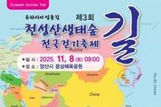 한국시사경제 경남취재본부 | 양산시는 11월 8일 오전 9시 웅상체육공원에서 '제3회 천성산생태숲길 전국걷기축제'가 개최된다고 밝혔다. 이번 행사는 (사)양산도시문화연구원이 주최·주관하고, 양산시와 (사)한국걷는길연합이 후원한다. ‘유라시아의 첫길, 천성산에서 유라시아로 가다’를 주제로 열리는 이번 축제는 천성산의 아름다운 숲길을 걸으며 생태와 문화, 평화의 가치를 공유하는 전국 규모의 걷기 행사다. 특히 ‘천 가지 이야기를 품은 천성산’이라는 부제를 통해 천성산의 생태적 가치와 역사문화 자원을 널리 알리고 지역민의 자긍심을 고취하는 데 의미를 두고 있다. 행사는 천성산을 사랑했던 고(故) 허영호 대장을 기리며, 대한민국 대표 산악인 최오순 산악인과 함께 걷는 특별 프로그램이 마련돼 있다. 또 웅상체육공원을 출발해 천성산생태숲길 주요 구간을 걷는 4개 코스가 마련돼 있어 남녀노소 누구나 참여할 수 있다. 참가 신청은 양산도시문화연구원 홈페이지 또는 포스터의 QR코드를 통해 가능하다. 양산시 관계자는 “천성산생태숲길은 양산의 대표적인 자연생태자원이자 시민과 관광객 모두가 즐길 수 있는 힐링 명소”라며