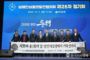 한국시사경제 경남취재본부 | 남해안남중권발전협의회(회장 장충남 남해군수)는 9일 쏠비치 남해에서 제26차 정기회를 개최하고 공동건의문 4건을 채택하는 한편, 주요 협의 안건 7건을 승인했다. 이날 회의에는 협의회장인 장충남 남해군수를 비롯해 조규일 진주시장, 하승철 하동군수, 정기명 여수시장, 공영민 고흥군수가 참석했으며, 사천시, 순천시, 광양시, 보성군에서는 부시장·부군수가 참석했다. 남해안남중권발전협의회는 이날 회의에서 △‘2026 섬 방문의 해’ 지정 촉구 건의 △2026 유엔기후협약 기후주간 대한민국 유치 건의 △‘우주항공복합도시 건설 특별법’ 조기 제정 건의 △대송산단선 철도 제5차 국가철도망 반영 건의 등 4건의 공동건의문을 채택했다. 이와 함께 △2026 여수세계박람회 입장권 사전 구매 △찾아가는 인문학(명사) 특강 △남해안남중권 종합홍보관 운영 등을 포함한 총 7건의 협의 안건을 처리했다. 남해안남중권협의회는 남해안권 공동발전을 위해 ‘동서화합·상생발전’을 목표로 결성된 영호남 9개 시·군의 협의체로, 진주시, 사천시, 남해군, 하동군, 여수시, 순천시, 광양시, 고흥군, 보성군이